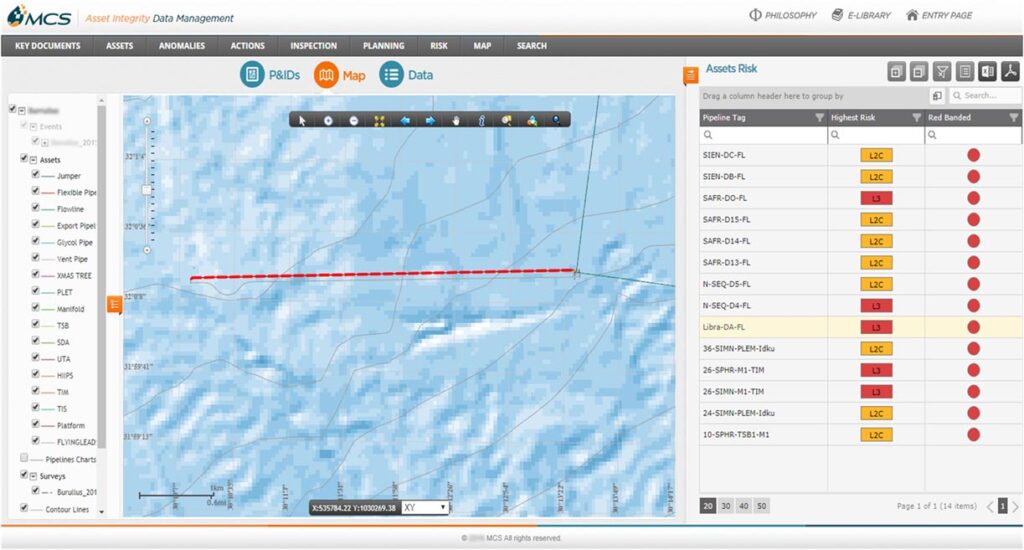 To address the client’s challenges, MCS introduced the MCS Digital Virtuoso Asset Integrity Data Management System. The system facilitated the consolidation of data from multiple sources, including XL, PDFs, and drawings of an enormous number of assets such as: